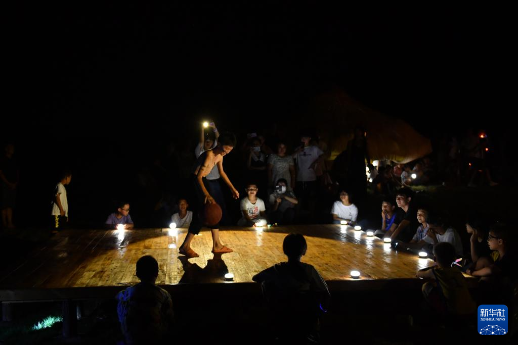 8月20日,在2023大元社乡村青少年艺术节中,小朋友用篮球表演讲述自己的成长故事。