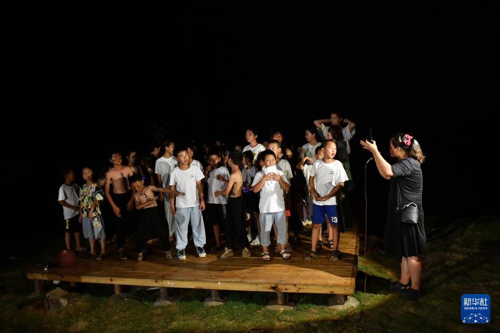 8月20日,在2023大元社乡村青少年艺术节中,孩子们朗诵自己创作的诗歌。。