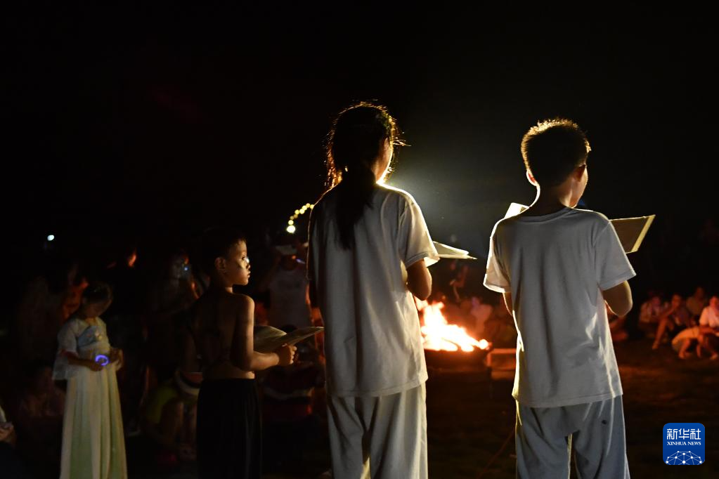 8月20日,在2023大元社乡村青少年艺术节中,老师和孩子们用古琴弹奏、演唱歌谣《南风歌》。