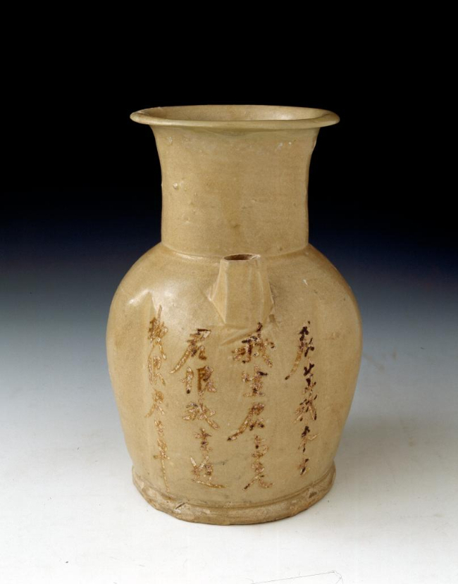 【唐 青釉褐彩“君生我未生”诗文壶】