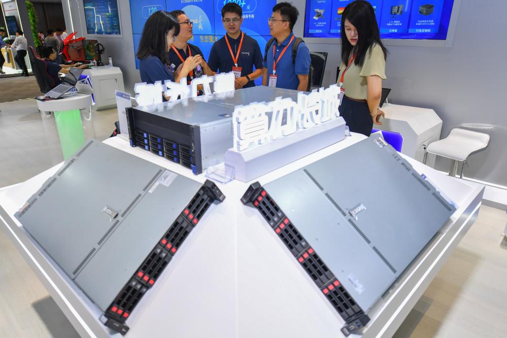 9月15日,参观者在2023世界计算大会专题展上了解AI服务器。新华社记者 陈泽国 摄