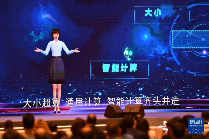 在2023世界计算大会开幕式现场,虚拟主持人介绍相关信息。新华社记者陈泽国 摄