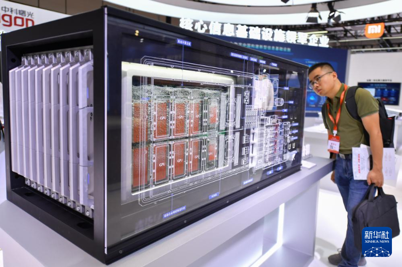 在成果展示区,机器识别、大模型推理等人工智能计算的典型应用,引来不少参观者体验、咨询。沐曦集成电路(上海)有限公司商务工程副总裁谭宗仁说,相比于传统计算,人工智能计算就像火车能拉很多节车厢一样进行并行计算,擅长图片和视频处理,让计算更加“聪明”。