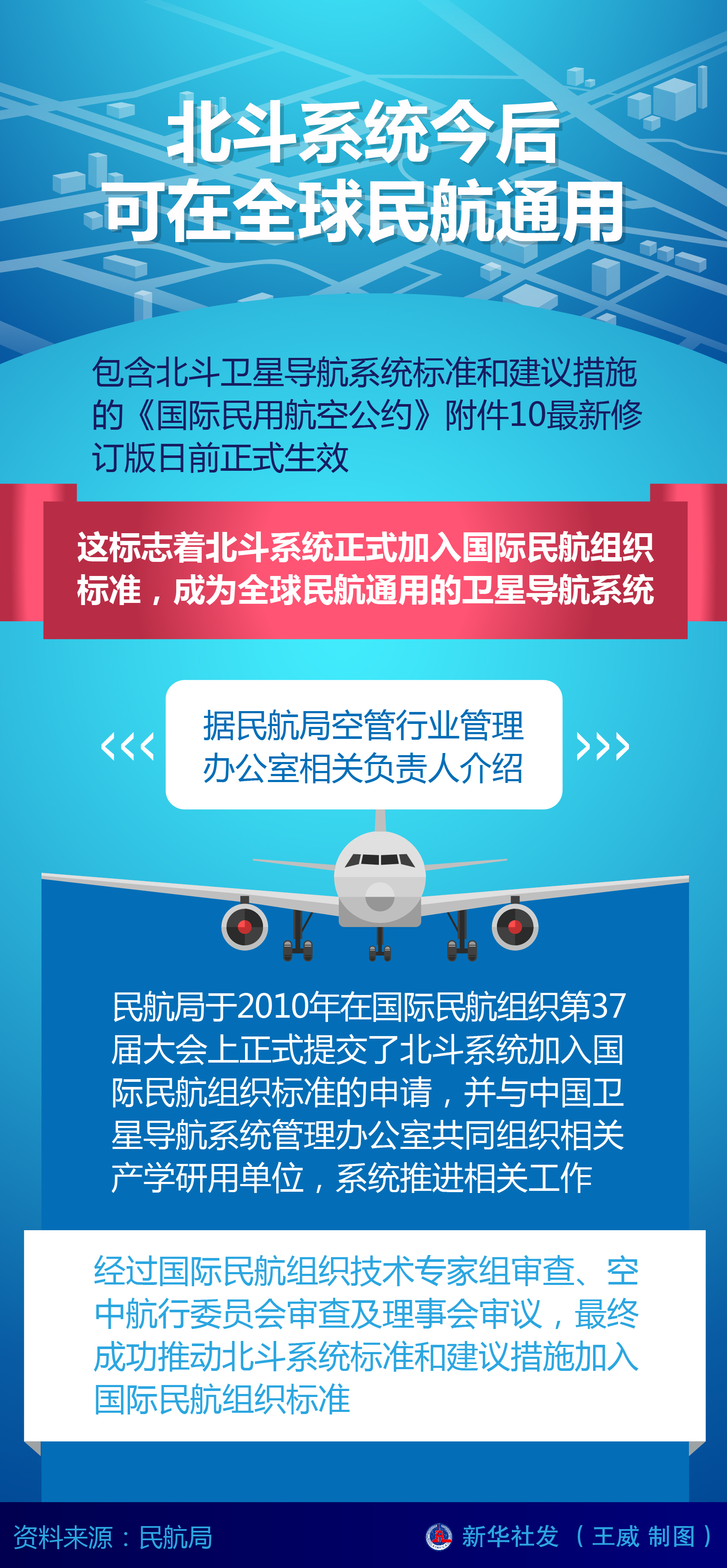 据民航局空管行业管理办公室相关负责人介绍,民航局于2010年在国际民航组织第37届大会上正式提交了北斗系统加入国际民航组织标准的申请,并与中国卫星导航系统管理办公室共同组织相关产学研用单位,系统推进相关工作。经过国际民航组织技术专家组审查、空中航行委员会审查及理事会审议,最终成功推动北斗系统标准和建议措施加入国际民航组织标准。