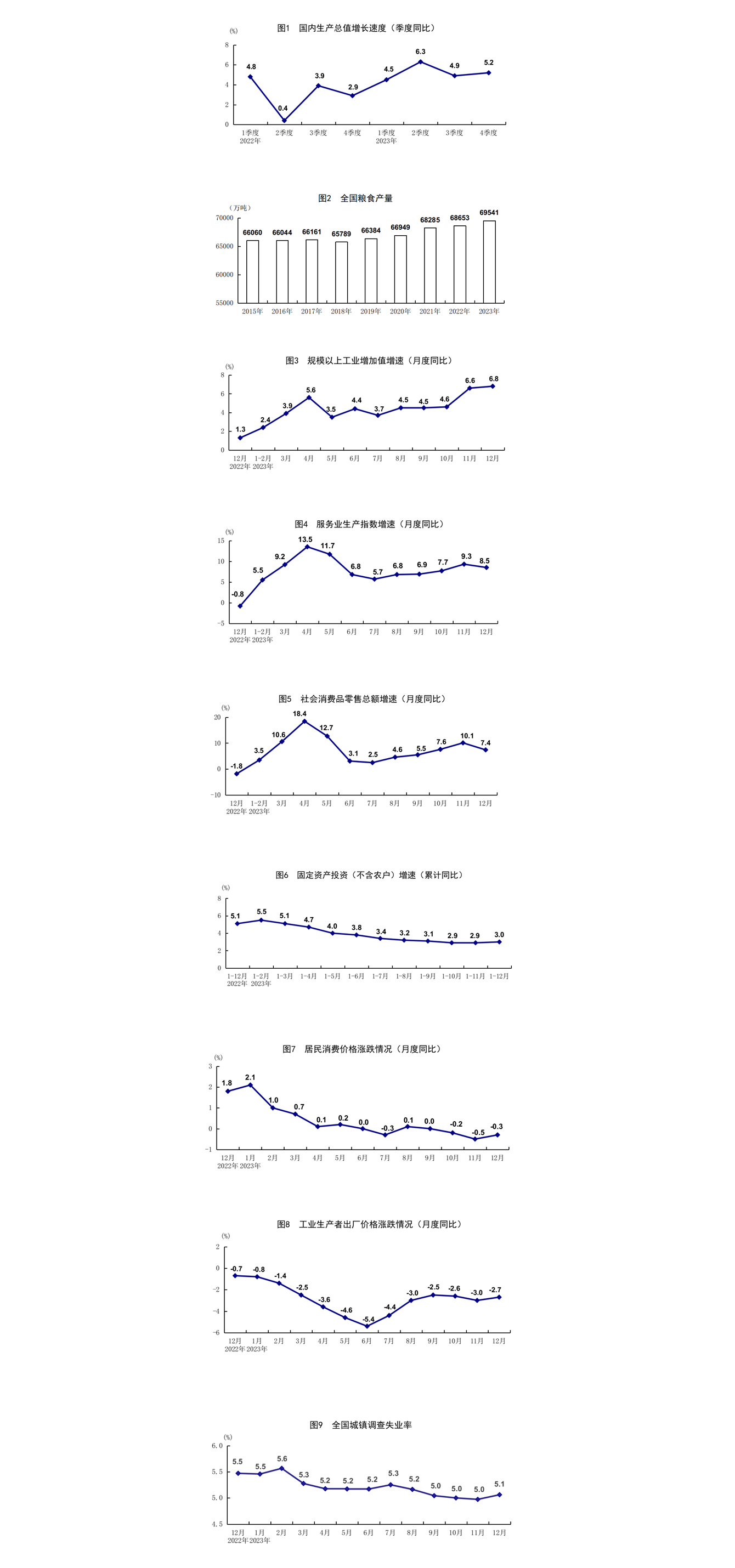 (2)根据季节调整模型自动修正结果,对近一年来各期国内生产总值、规模以上工业增加值、固定资产投资(不含农户)、社会消费品零售总额环比增速进行修订。修订结果及2023年四季度GDP环比数据、2023年12月份其他指标环比数据如下: