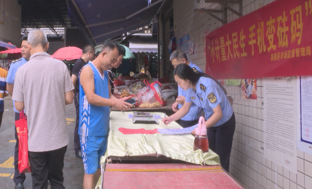 6月20日,茶陵县市场监督管理局开展“小计量大民生,手机变砝码”活动,让“鬼秤”无处遁形,进一步推动市场公平交易。