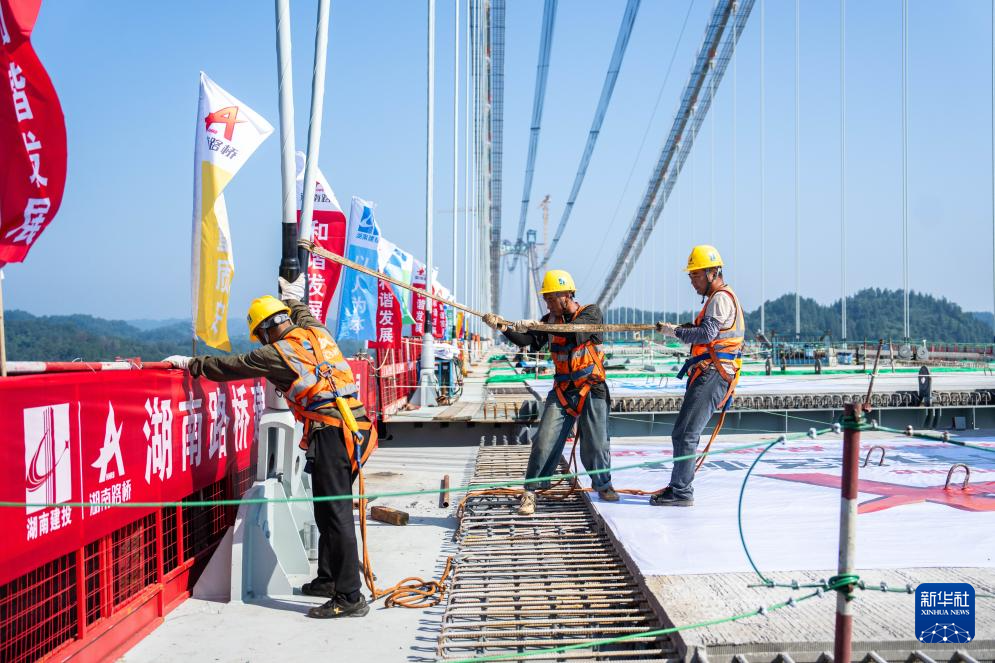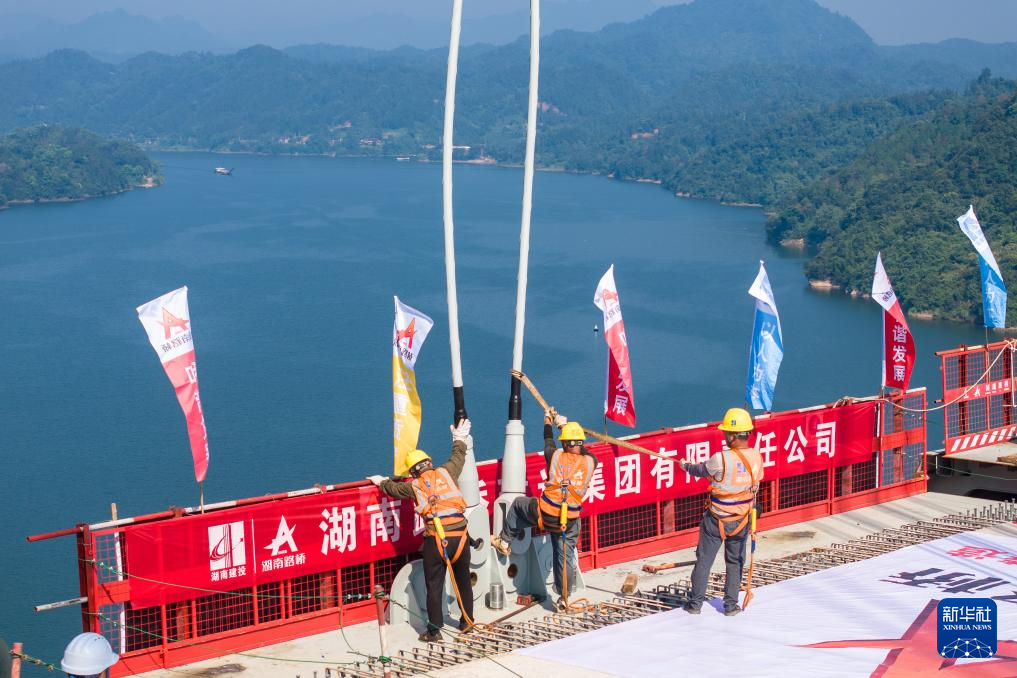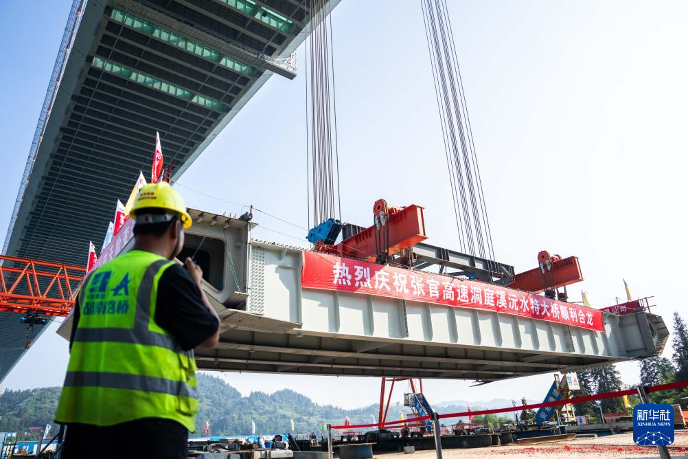湖南张官高速洞庭溪沅水特大桥主桥合龙-新华网