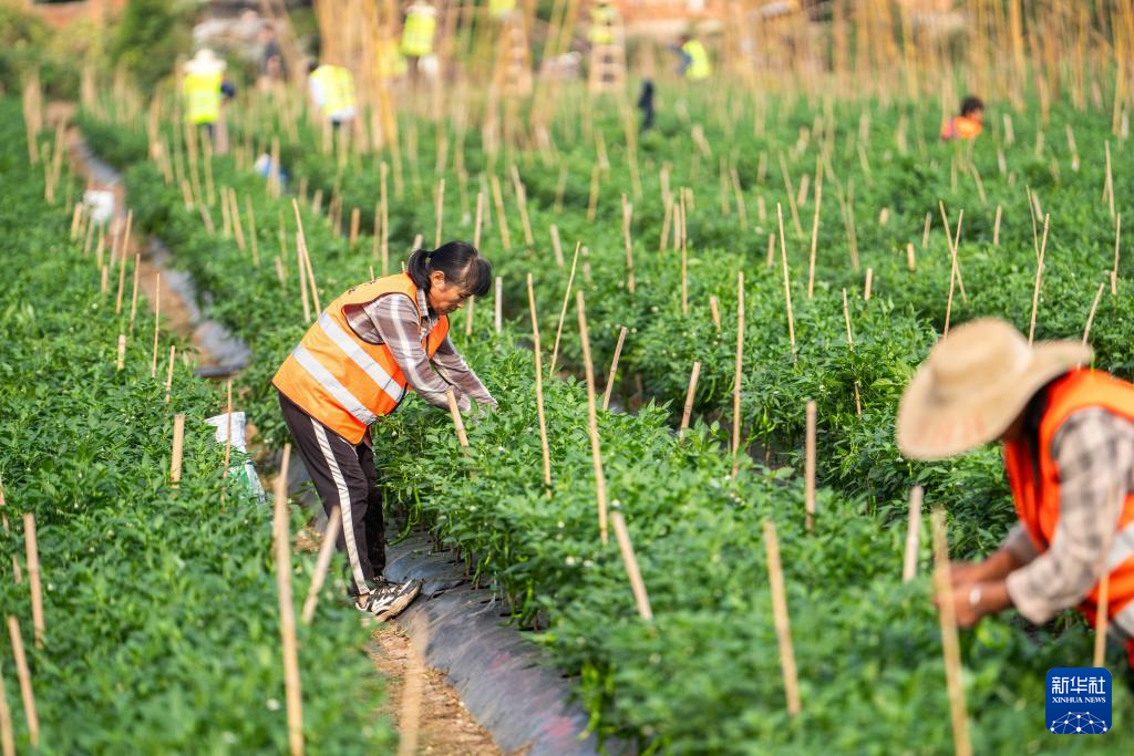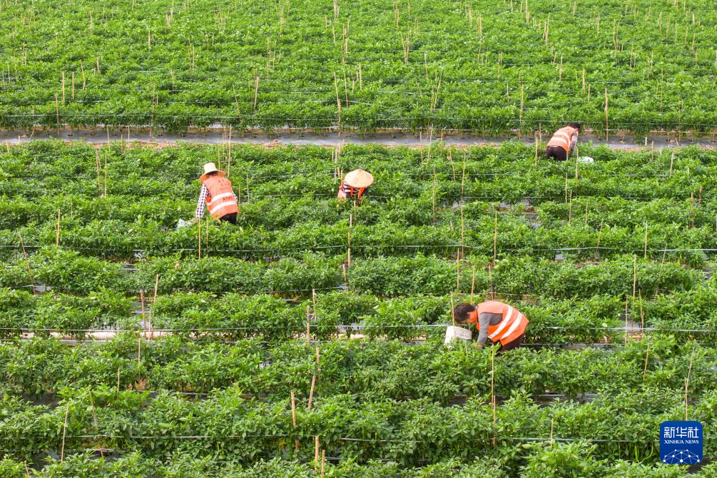 时下,湖南省益阳市南县华阁镇新安村种植基地迎来收获的关键期,农民们抢抓时节,分批有序采收。近年来,南县通过优选品种、优化产业结构等方式,将水果玉米、辣椒、菜薹等作为区域种植品种大力推广。当前主要采取“辣椒+玉米”“菜薹+瓜果”“菜薹+稻”等套种模式。