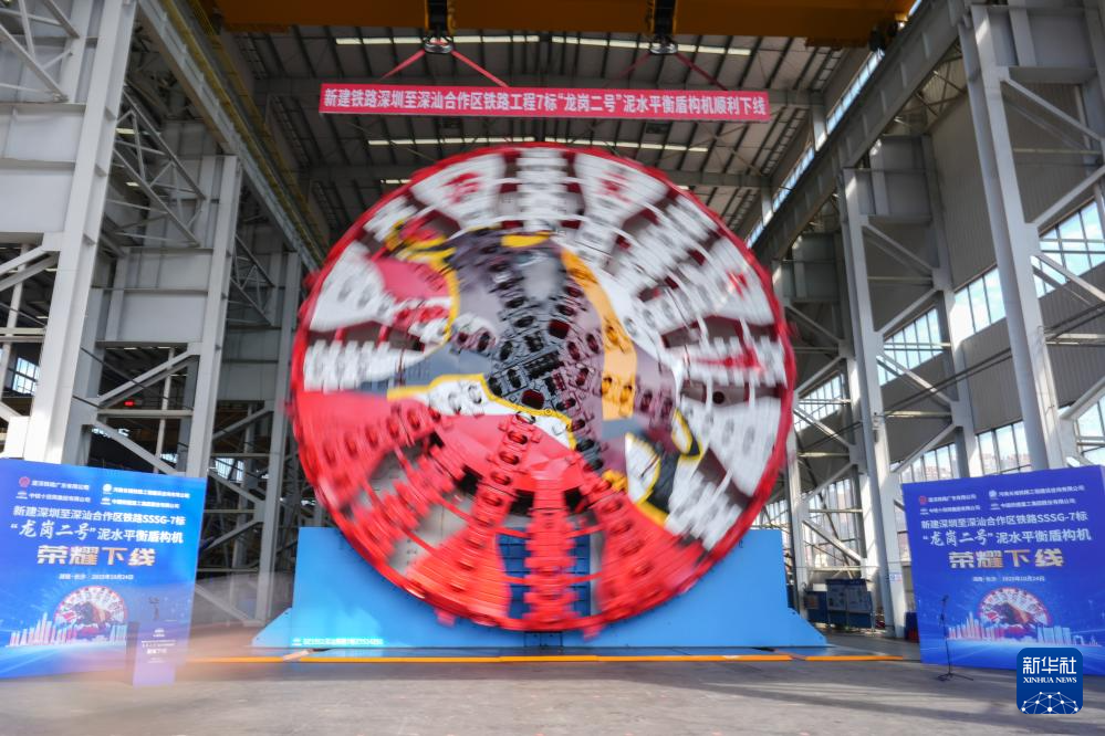 10月24日在铁建重工长沙第一产业园拍摄的“龙岗二号”盾构机。新华社记者 陈泽国 摄