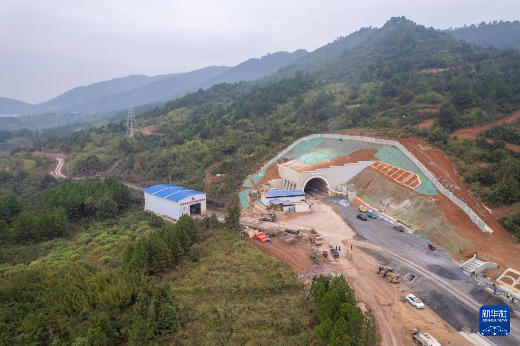 这是11月1日在湖南省永州市东安县拍摄的邵永高铁东安隧道出口。新华社记者 陈思汗 摄pagebreak