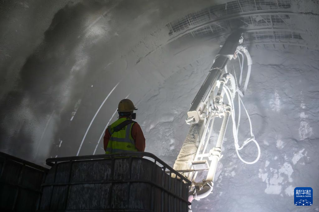 11月1日,在邵永高铁东安隧道施工现场,中铁二十五局工人操作湿喷台车进行喷浆作业。新华社记者 陈思汗 摄pagebreak