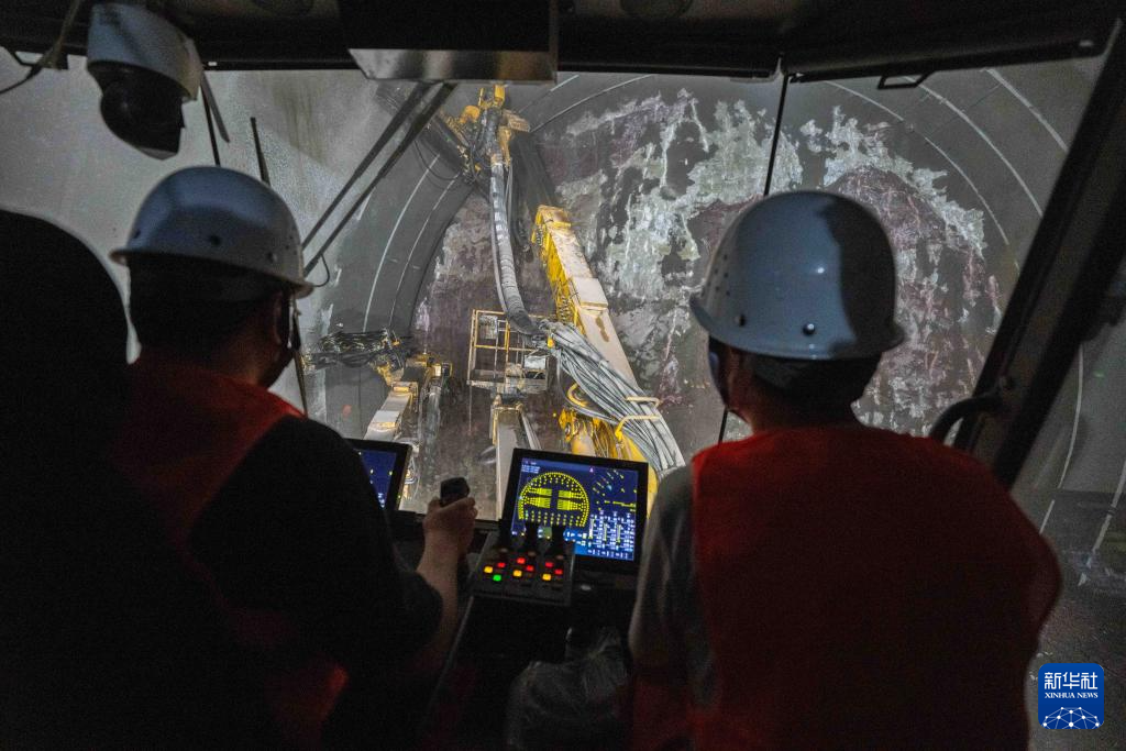 11月1日,在邵永高铁东安隧道施工现场,中铁二十五局工人操作三臂凿岩台车进行钻孔作业。新华社记者 陈思汗 摄pagebreak