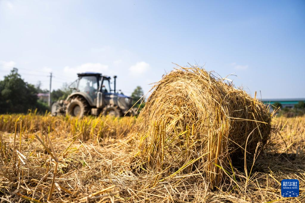 11月5日,在长沙县开慧镇开慧村,村民操作自走式秸秆打捆机回收水稻秸秆。新华社记者 陈思汗 摄pagebreak