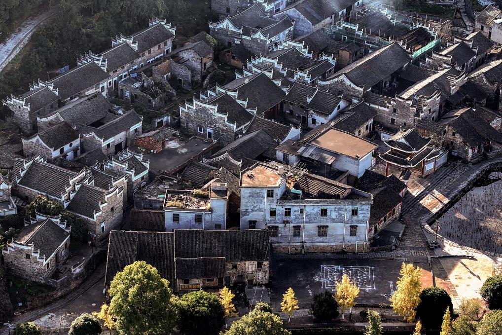 11月24日,人们在郴州汝城县金山村一处古祠堂内(无人机照片)。其中,