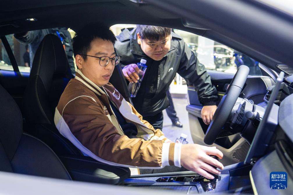 12月10日,观众(右一)在了解参展车辆。新华社记者 陈思汗 摄pagebreak