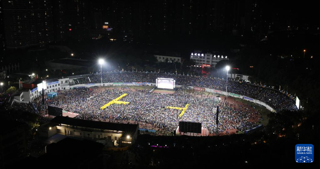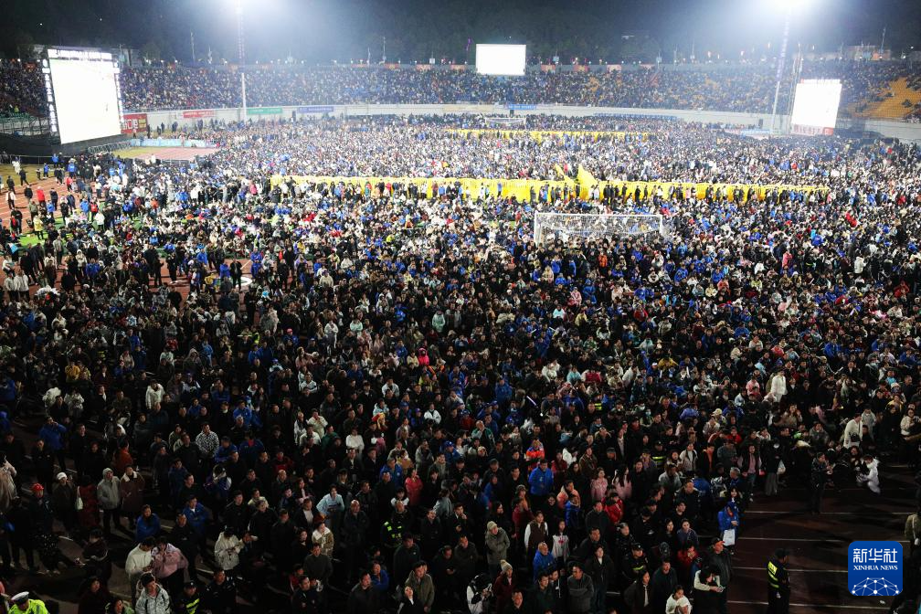 12月27日,球迷在永州市体育场观看“湘超”决赛直播。
