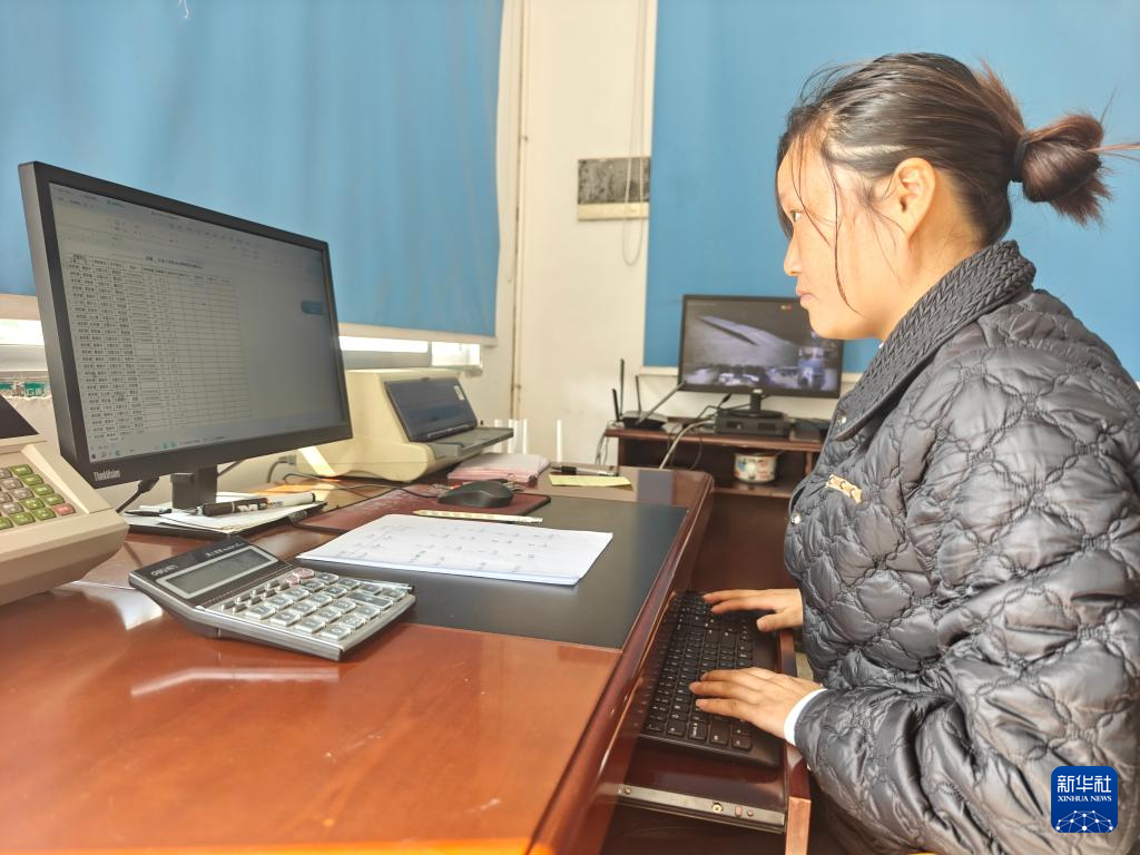 天水农机专业合作社工作人员在统计服务农民的种植情况。新华社记者周勉 摄