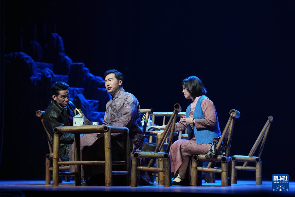 3月27日,演员在中南大学天心校区礼堂演出2025版话剧《红岩》。