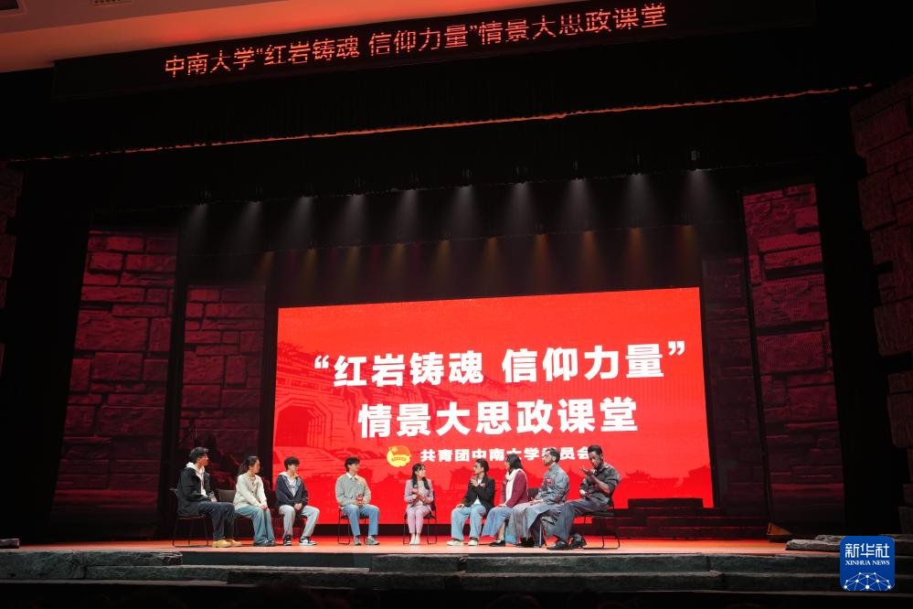 演出后,剧组设置情景大思政课环节,让演员、导演与师生互动交流。来自中南大学马克思主义学院的学生代表范淑顺说,这种沉浸式体验让他对初心与担当有了更深理解。“这种形式让思政教育方式向‘学生主动感悟’转变。”中南大学思政课教师李淼磊认为,情景互动让红岩精神在交流与共鸣中生根发芽。